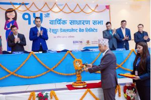 KalikaNagar, Butwal-11 RupandehiThe 15th AGM of Shine Resunga Development Bank Ltd. was successfully held at Dreamland Gold Resort in Butwal, Rupandehi, today, i.e., Mangshir 23, 2080. We express gratitude to all our stakeholders for contributing to the event's success through their participation, providing constructive feedback, and extending great support for the bank’s future endeavors.